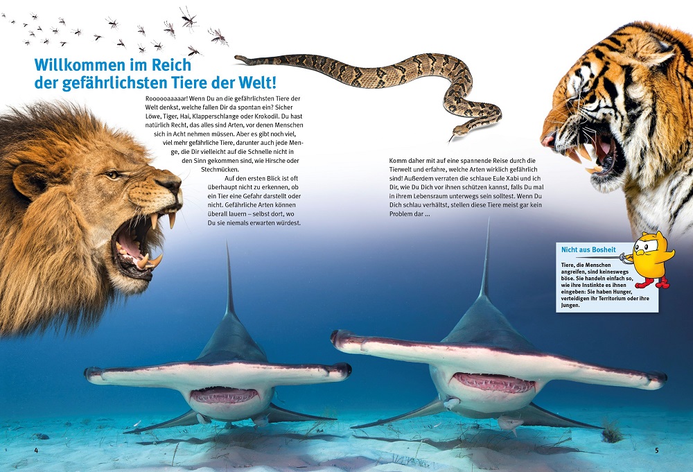 In diesem Band der „Entdecke“-Reihe nehmen wir dich mit auf eine spannende Reise zu den gefährlichsten Tieren der Welt – zu ganz bekannten und zu solchen, an die Du bestimmt nicht gedacht hättest…